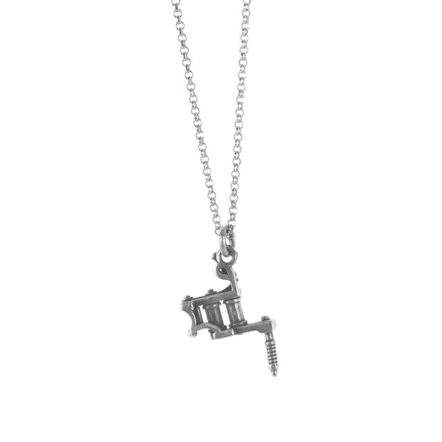 Ciondolo in argento a forma di macchinetta da tatuatore