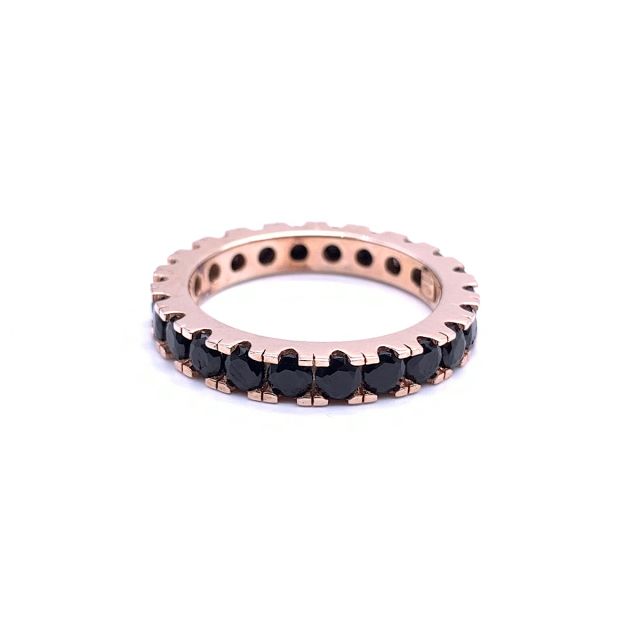 Eternè in argento 925‰ finitura oro rosa con zirconi black montati a griff. Le pietre vengono incassate e non incollate pe prevenirne la perdita, ogni pietra è sostenuta da quattro griff, lo spessore del'anello è di circa 3MM