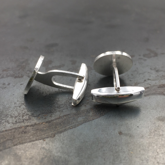 gemelli in argento 925‰ taglio tondo con chiusura a scatto finitura lucida a specchio.