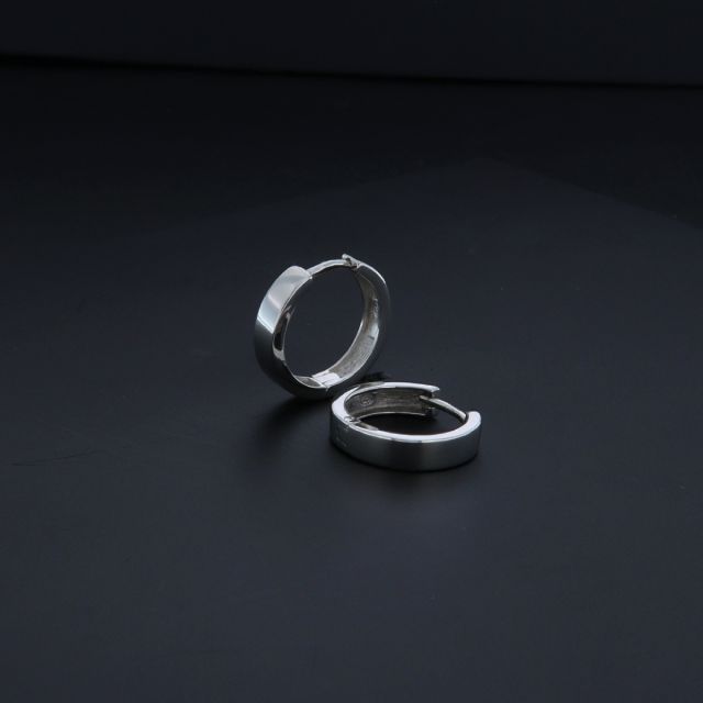 Orecchini a cerchio squadrato diametro esterno 18 mm c.ca Spessore cerchio 4 mm c.ca Materiale argento 925‰ anallergico Finitura rodio lucida